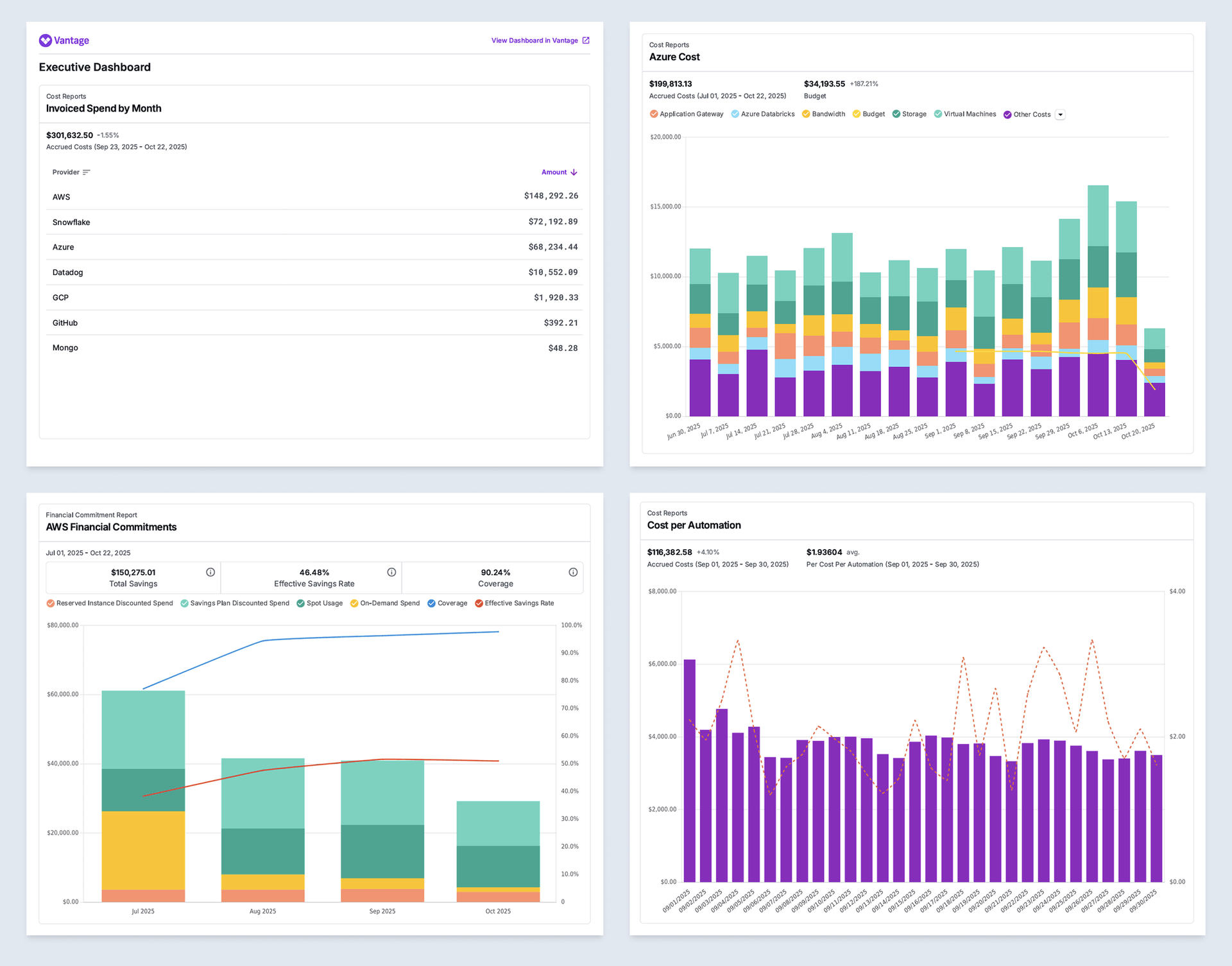 Any Vantage user with access to Dashboards can export them as PDFs. This includes FinOps teams, engineering leaders, and finance partners who need to share or archive periodic cost data.