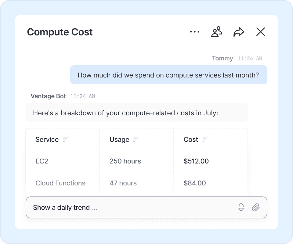 Allow your organization to analyze cost data through Large Language Models like ChatGPT and Claude.