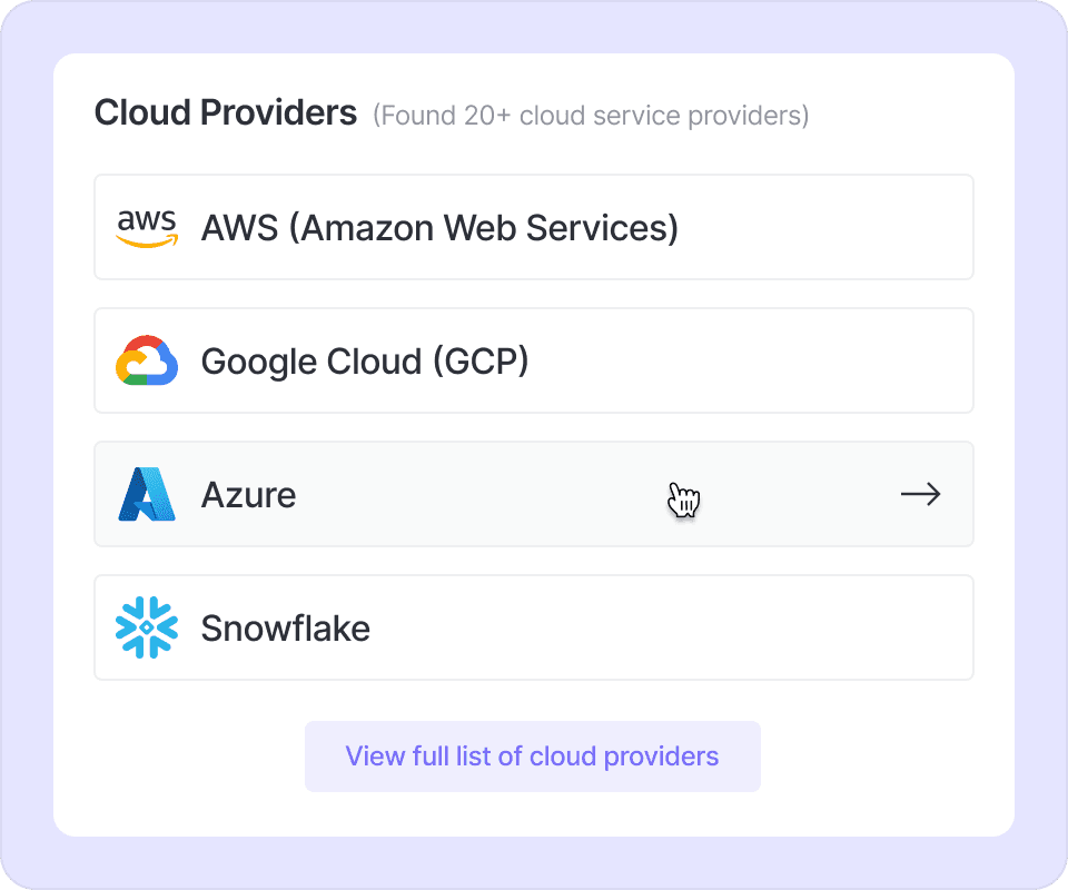Vantage uses secure, read-only service accounts to access cost data on AWS, Azure, GCP, Snowflake, Kubernetes, and more.