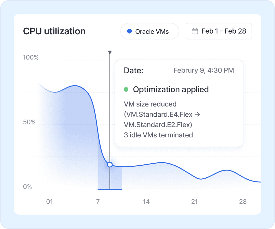 Vantage flags unexpected cost spikes across Oracle in real time, helping you address issues before they impact your budget.