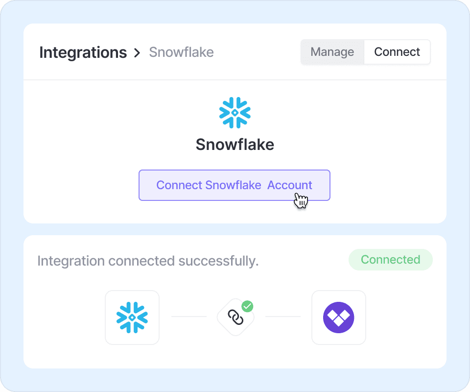 Vantage integrates with Snowflake via a secure, read-only user. Once connected, queries are immediately synced and recommendations are generated.